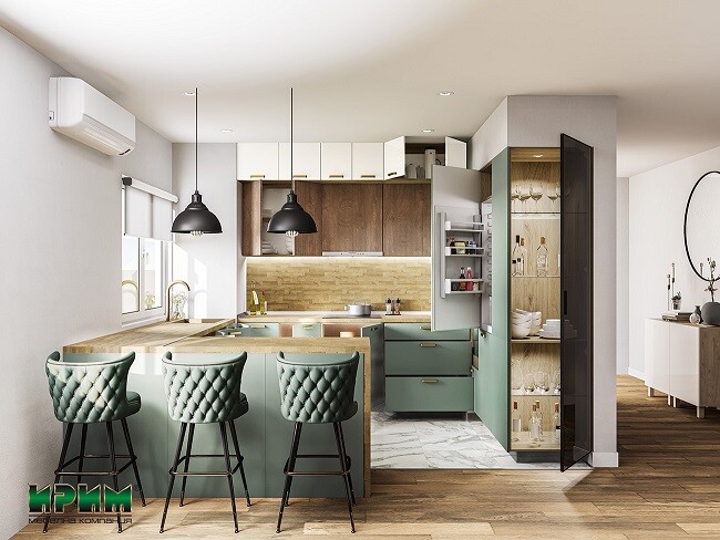 - Колонен модул с възможност за вграждане на хладилник с височина 178см АРФ-Олив мат-11-50 - 60/59/223см.