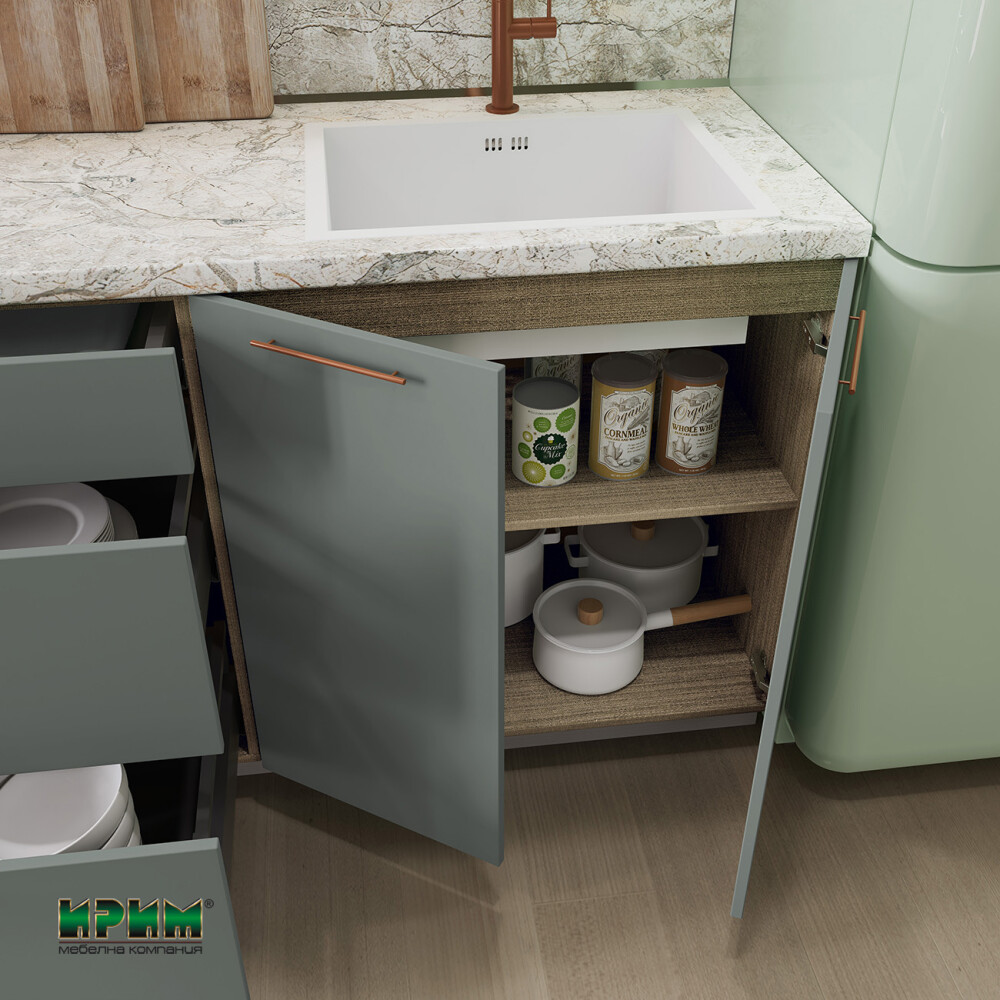 - Долен модула с две врати и плот, възможност за вграждане на мивка МФ-Олив мат-11-23 - 80/55/87см.