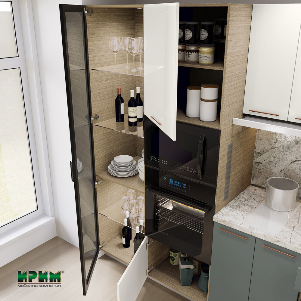 - Колонен модул с възможност за вграждане на фурна и микровълнова с височина 38см МФ-Крийм гланц-11-48 - 60/59/223см.
