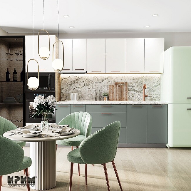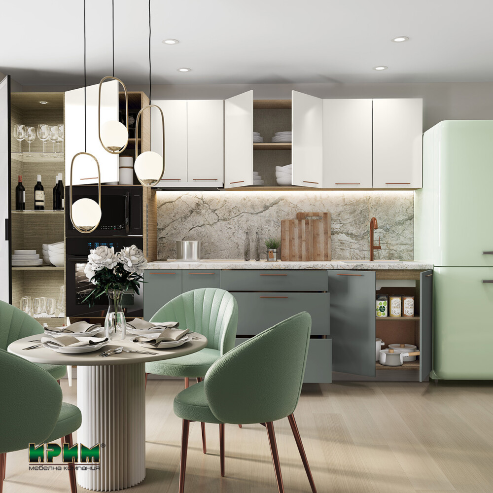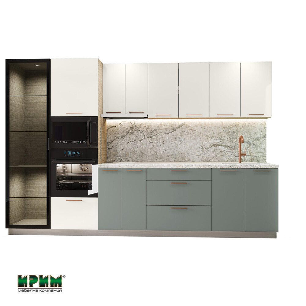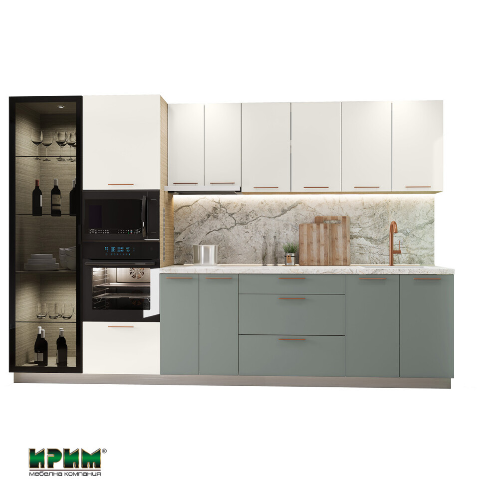 Модерната кухня в Сити 9170 предлага стилна цветова комбинация и отлично организирано пространство с функционални модули. МДФ фронтовете, системата InnoTech Atira с плавно прибиране и LED осветлението осигуряват високо качество и удобство при ежедневна употреба. Кухнята позволява вграждане на мивка и електроуреди, като включва витринен шкаф, удобни чекмеджета и просторни долни модули. Това е елегантно и практично решение за всеки съвременен дом.