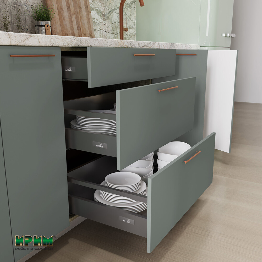 - Долен модул с три чекмеджета със система InnoTech Atira плавно пребиране МФ-Олив мат-11-55 - 80/55/87см