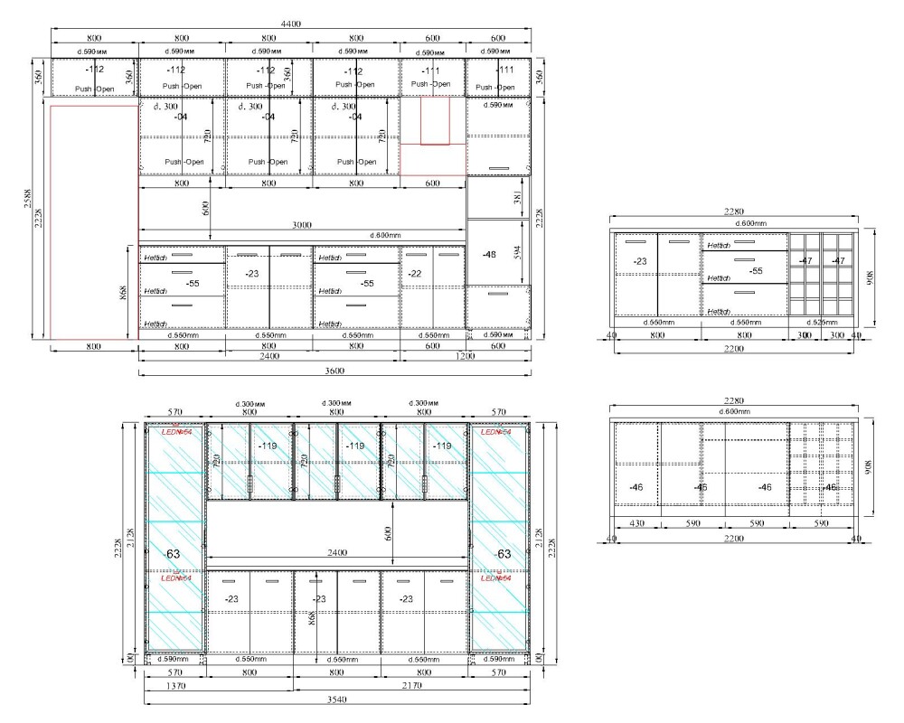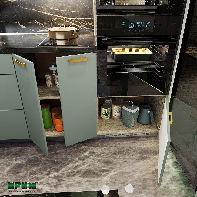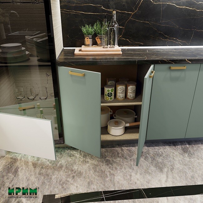 - Четири долни модула с две врати и плот, възможност за вграждане на мивка МФ-Олив мат-11-23 - 80/55/87см.