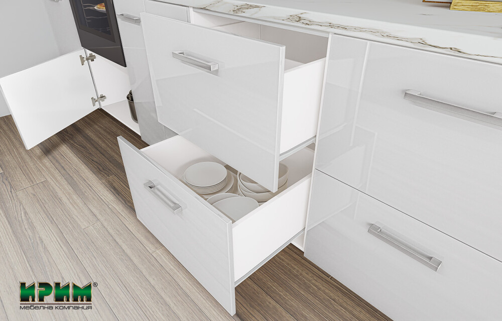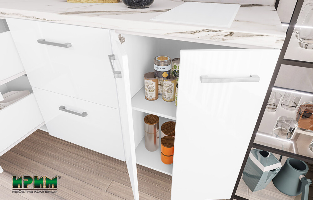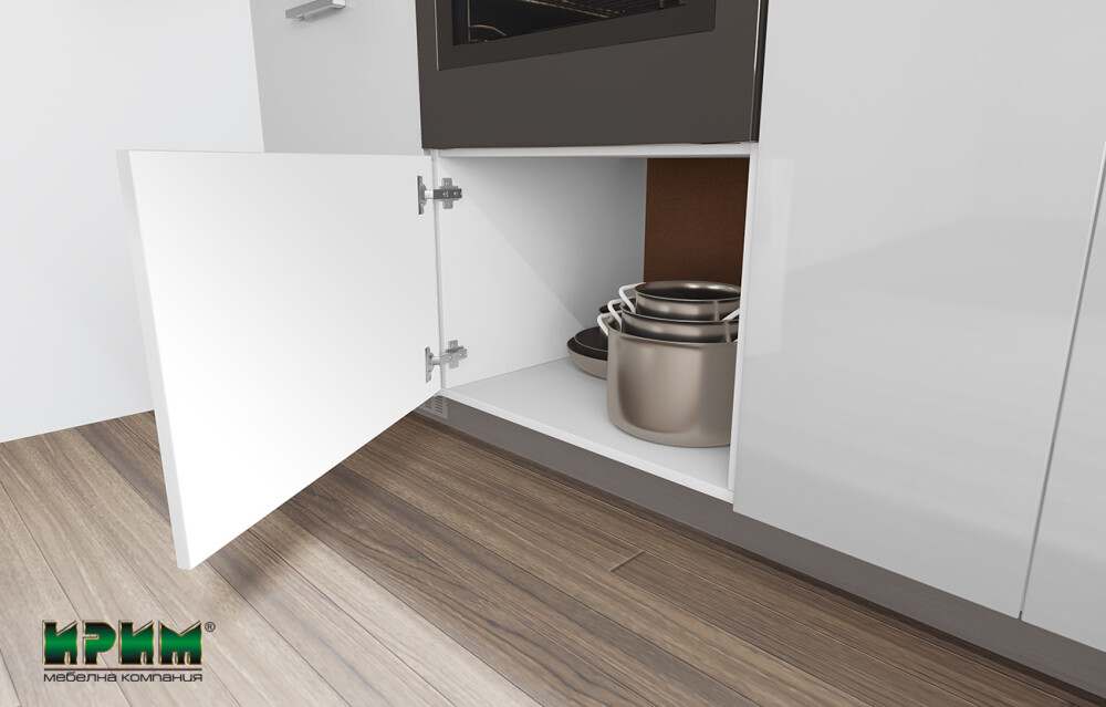 - Два долни модула с две врати и плот, възможност за вграждане на мивка БФ-Бяло гланц-05-22 - 60/55/87см.