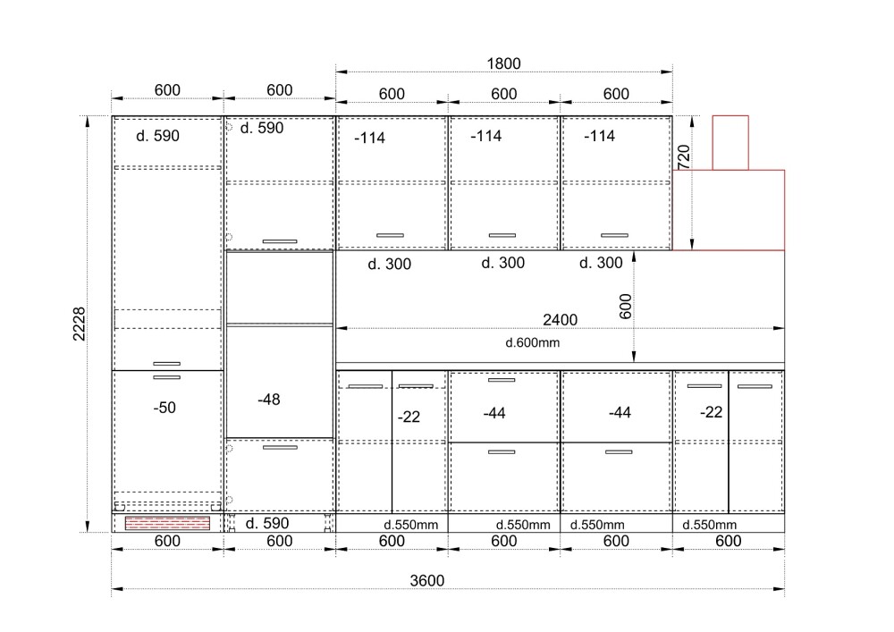 В цената не са включени : термогръб, водобран, тапи и ъгли, присъединителна лайсна, декоративни елементи, мивка, батерия и електроуреди.