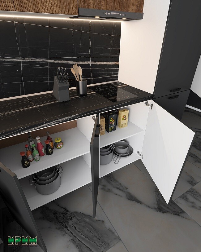 - Два долни модула с две врати и плот, възможност за вграждане на мивка БФ-Карбон мат-11-23 - 80/55/87см.