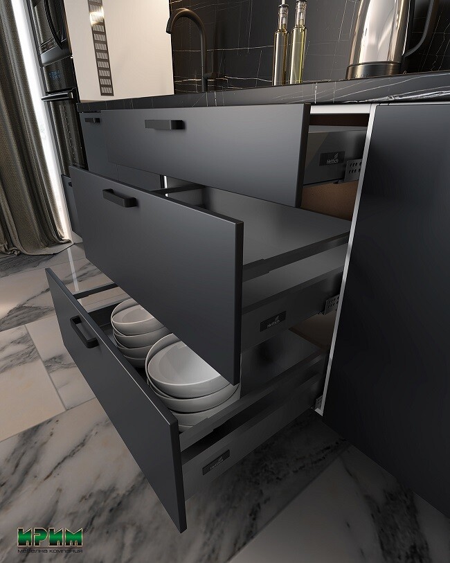 - Долен модул с три чекмеджета и система InnoTech Atira Плавно пребиране БФ-Карбон мат-11-55 - 80/55/87см.