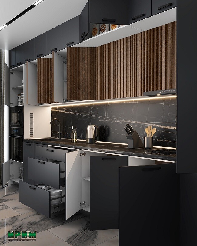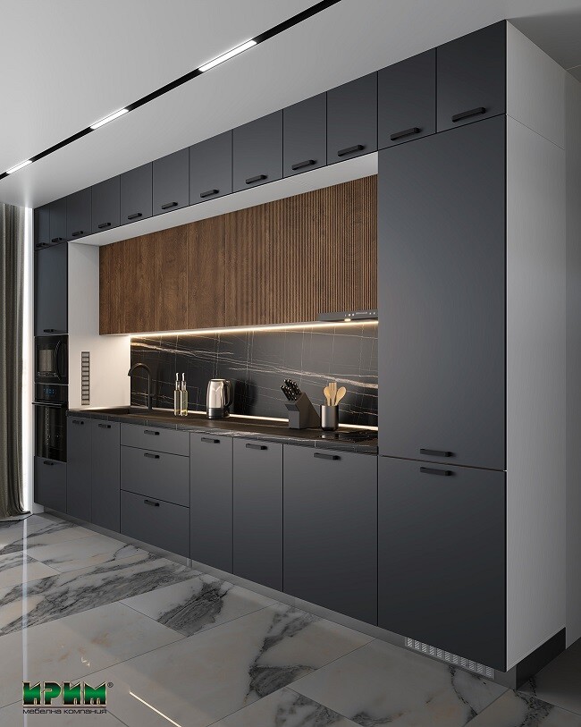 Модерната кухня Сити 9137 в стилна комбинация от Карбон мат и Дъб натурал се отличава с изключителна функционалност и висококачествени МДФ материали. Долният ред предлага възможност за вграждане на мивка, уреди и допълнително удобство чрез система InnoTech Atira за плавно прибиране на чекмеджетата. Горните шкафове в натурална дървесна визия създават топъл акцент и подчертават модерната линия на кухнята. Термоплотът „Мрамор Палазо“ завършва елегантния дизайн, осигурявайки стил и устойчивост за ежедневна употреба.