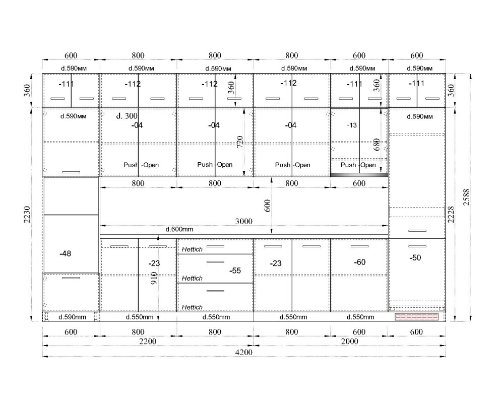 - Четири горни модула с две врати БФ-Карбон мат-11-111 - 60/59/36см.