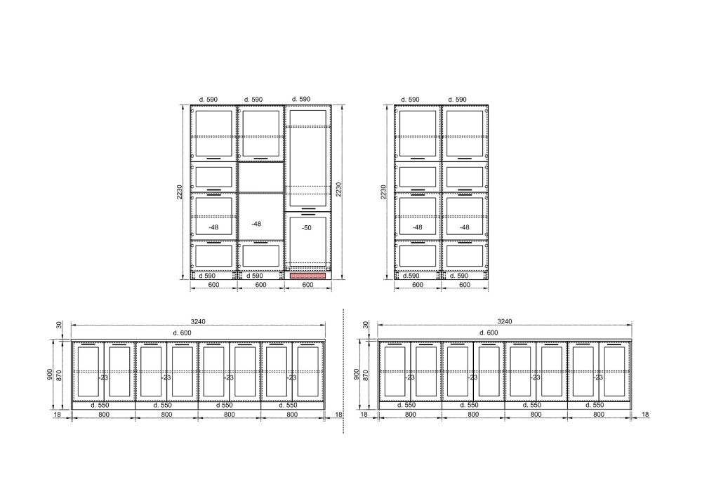 - Четири колонни модула с възможност за вграждане на фурна и микровълнова с височина 38см БФ-Цимент мат-11-48 - 60/59/223см.