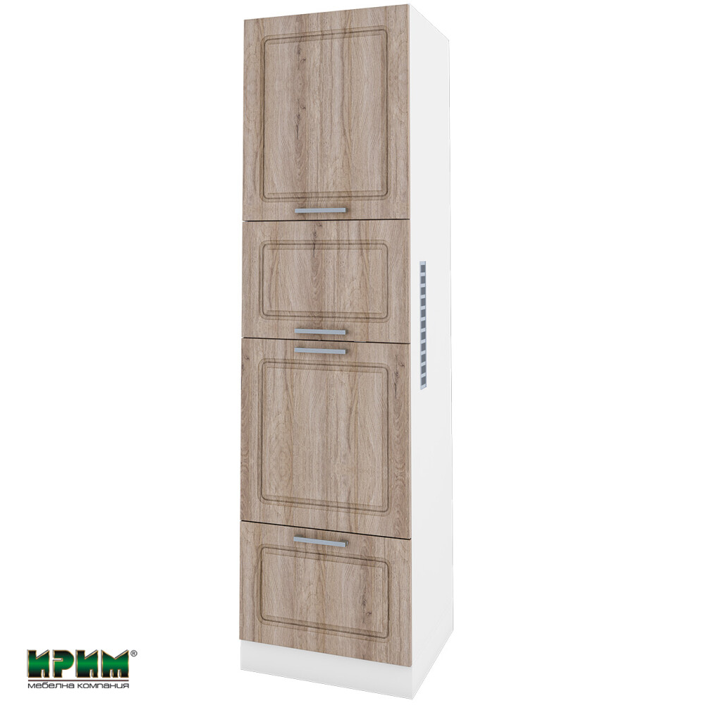 Кухненските модули БФ – Сонома предлагат стилна комбинация от естествен дървесен декор и модерна линия, благодарение на лицето от МДФ Сонома 18 мм. Корпусът от бяло гладко ПДЧ 16 мм създава свеж и светъл контраст, който подчертава топлината на дървесния цвят. Материалите са устойчиви, лесни за поддръжка и гарантират дълъг живот на мебелите. Подходящи са за модерни, скандинавски и класически кухни с естествено излъчване.