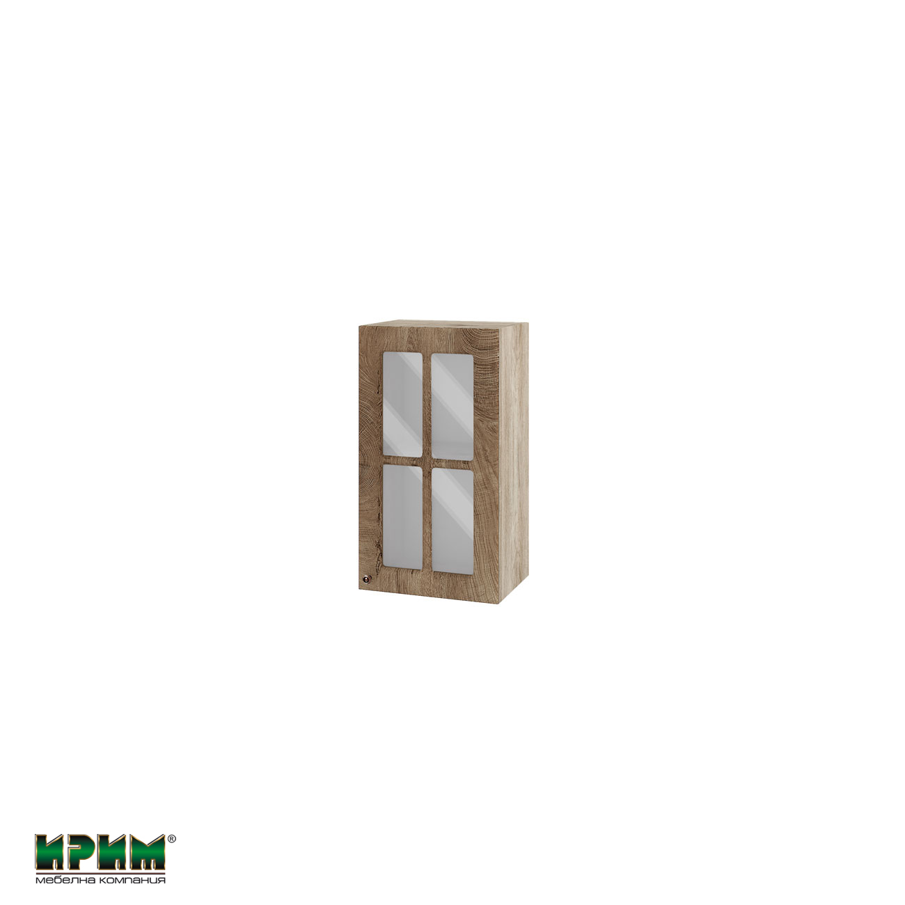 Горен модул с витринна врата и рафт АРФ-Дъб натурал-06-102