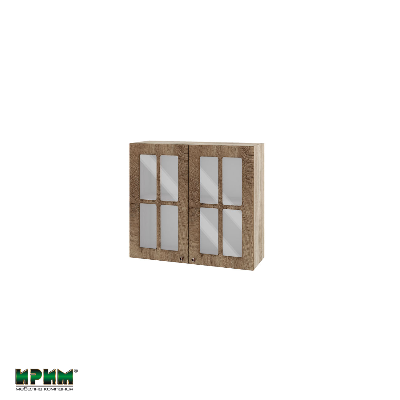 Горен модул с две витринни врати и рафт АРФ-Дъб натурал-06-104