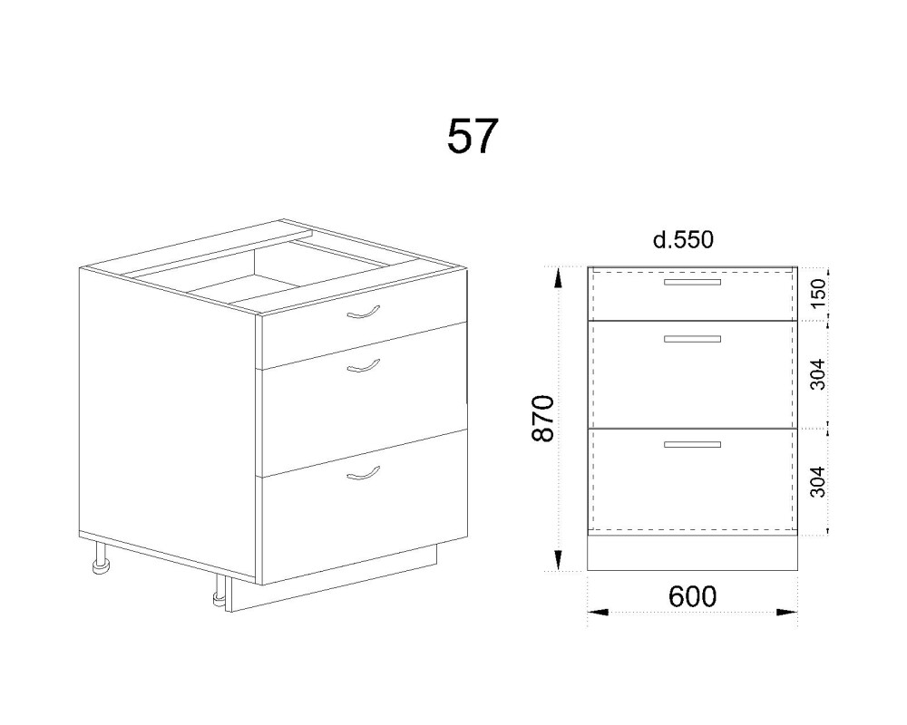 Долен модул с три чекмеджета АРФ-Дъб натурал-06-57
