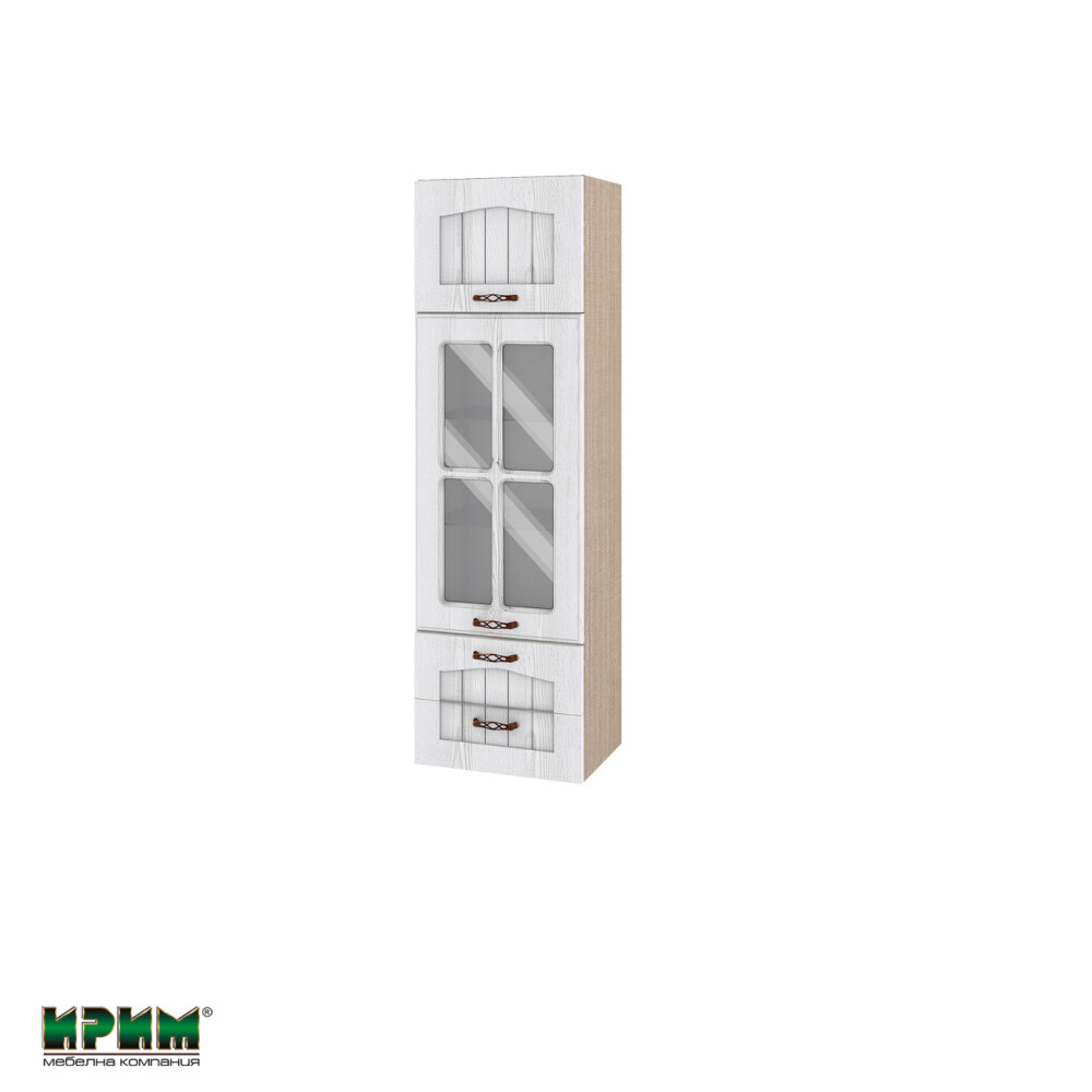 Горен модул с врата,витрина и две чекмеджета МФ-Бяло фладер-04-101