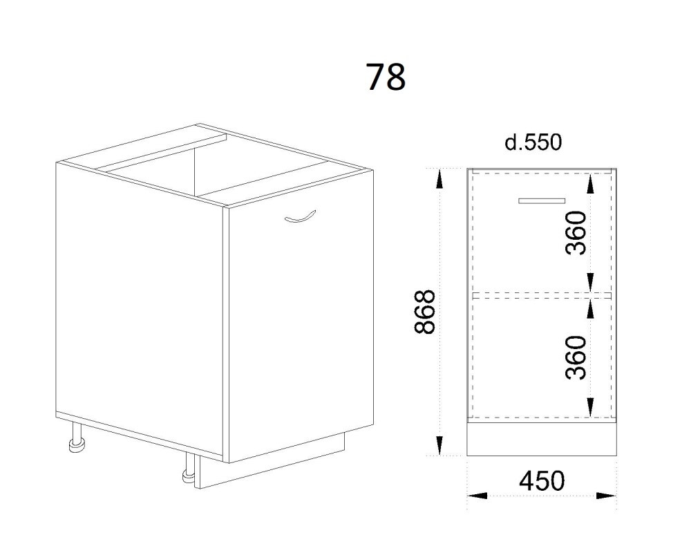 Долен модул с врата и рафт МФ-Бяло фладер-04-78 (ляв)