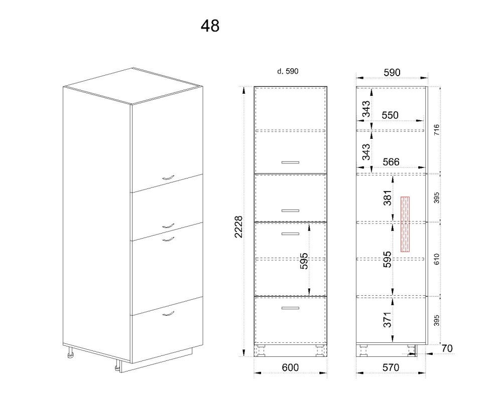 - Възможност за вграждане на фурна и мирковълнова с височина 38см