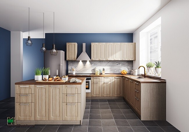 Кухнята Сити 9176 съчетава модерен дизайн, топъл дървесен цвят и практична конфигурация на модулите, подходяща за всяко съвременно жилище. Функционалният долен ред включва модули за фурна, ъглов шкаф, шкафове за мивка и множество чекмеджета за оптимално съхранение. Островът добавя допълнително пространство за работа и подреждане, като предлага удобни шкафове и симетрично оформление. Изработена от висококачествен МДФ и оборудвана с плавно затваряне, кухнята осигурява дълготрайност, комфорт и стил в ежедневната употреба.