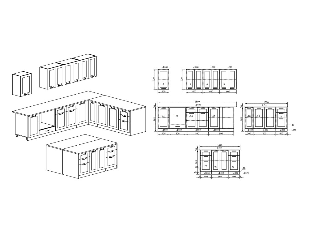 В цената не са включени : термогръб, водобран, тапи и ъгли, присъединителна лайсна, декоративни елементи, мивка, батерия и електроуреди.