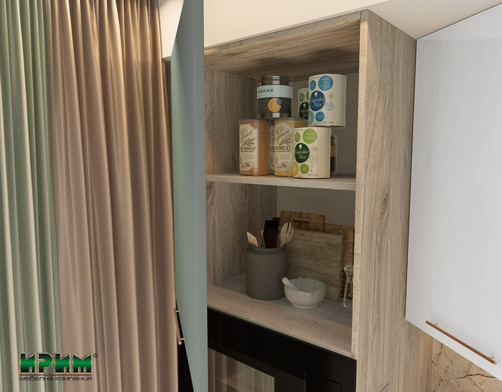 Кухнята Сити 9119 съчетава модерен стил и елегантна цветова комбинация, създавайки уютна и съвременна атмосфера в дома. Долният ред предлага напълно функционални модули – колонни шкафове за уреди, широки модули за мивка и практични чекмеджета с плавно прибиране, осигуряващи удобство и оптимално разпределение. Горният ред в бял гланц добавя визуална лекота и предоставя достатъчно място за подредба и съхранение. Изработена от висококачествен МДФ, тази кухня гарантира дълготрайност, комфорт и стилно присъствие във всяко пространство.