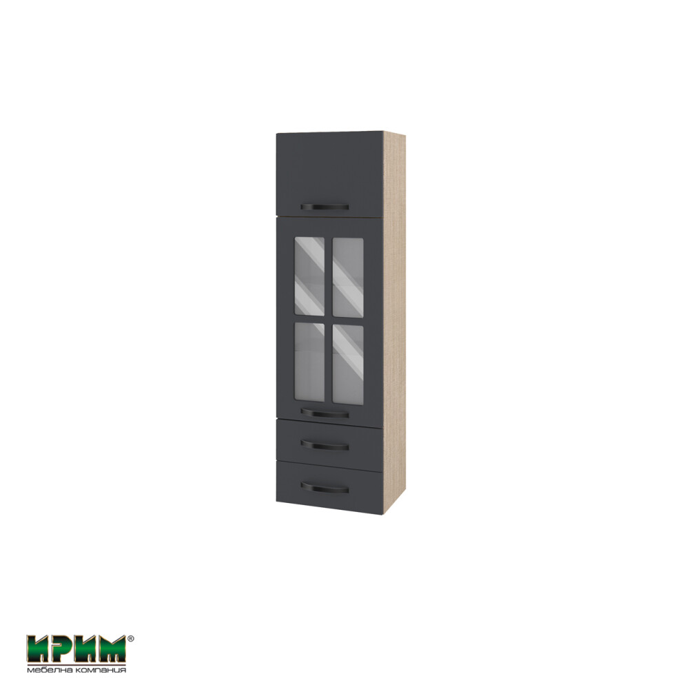 Горен модул с врата,витрина и две чекмеджета МФ-Карбон мат-11-101