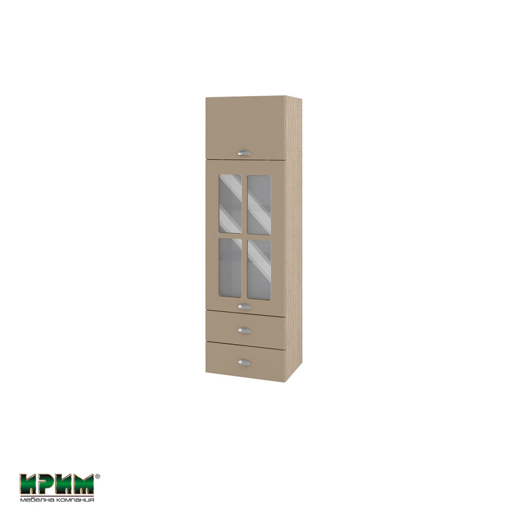 Горен модул с врата,витрина и две чекмеджета МФ-Капучино мат-11-101