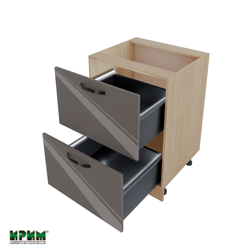 Долен модул с две чекмеджета с плавно затваряне и LED осветление МФ-Антрацит гланц-05-72