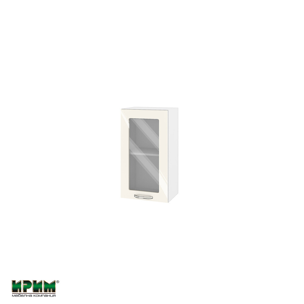 Горен модул с витринна врата и рафт БФ-Крийм гланц-11-202