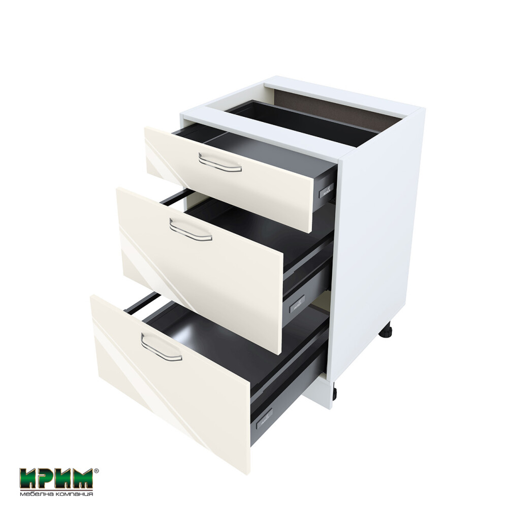 Долен модул с три чекмеджета с плавно затваряне БФ-Крийм гланц-11-54