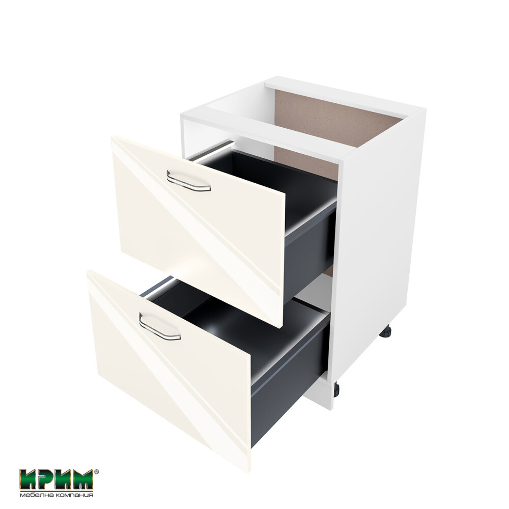 Долен модул с две чекмеджета с плавно затваряне и LED осветление БФ-Крийм гланц-11-72