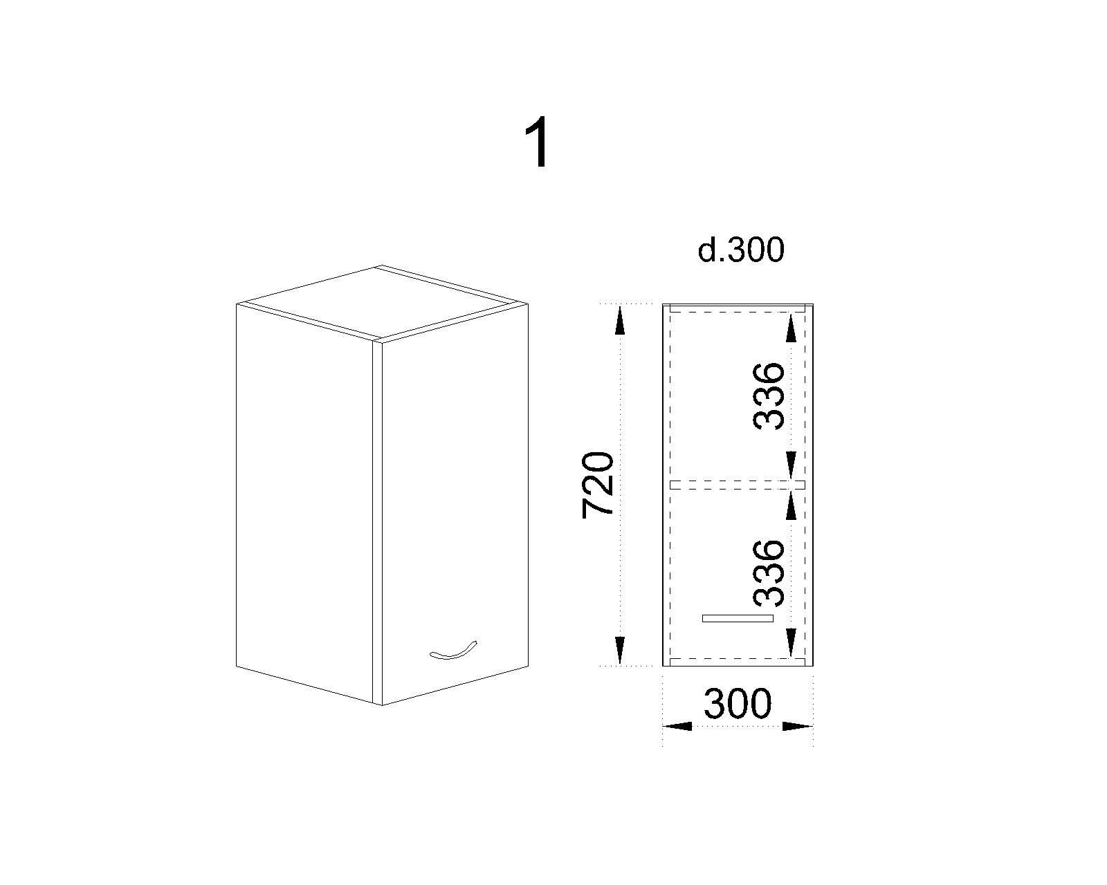 Горен модул с врата и рафт МФ-Крийм гланц-11-1