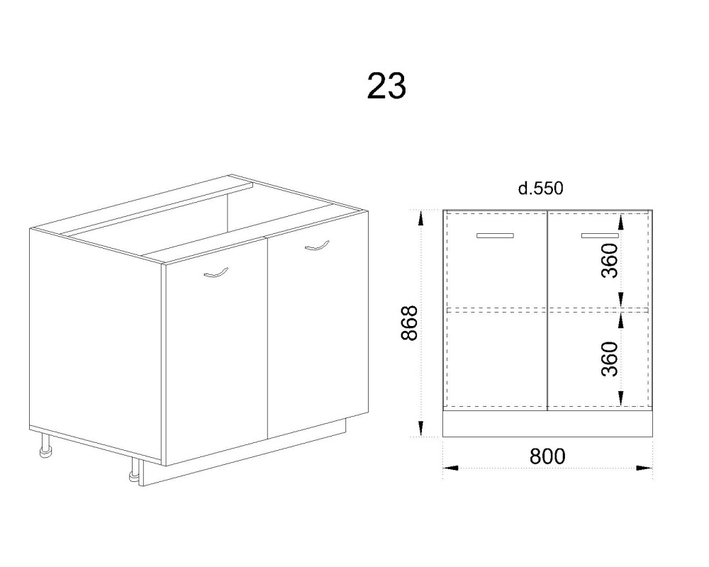 Долен модул за вграждане на мивка с две врати и рафт БФ-Деним мат-06-23