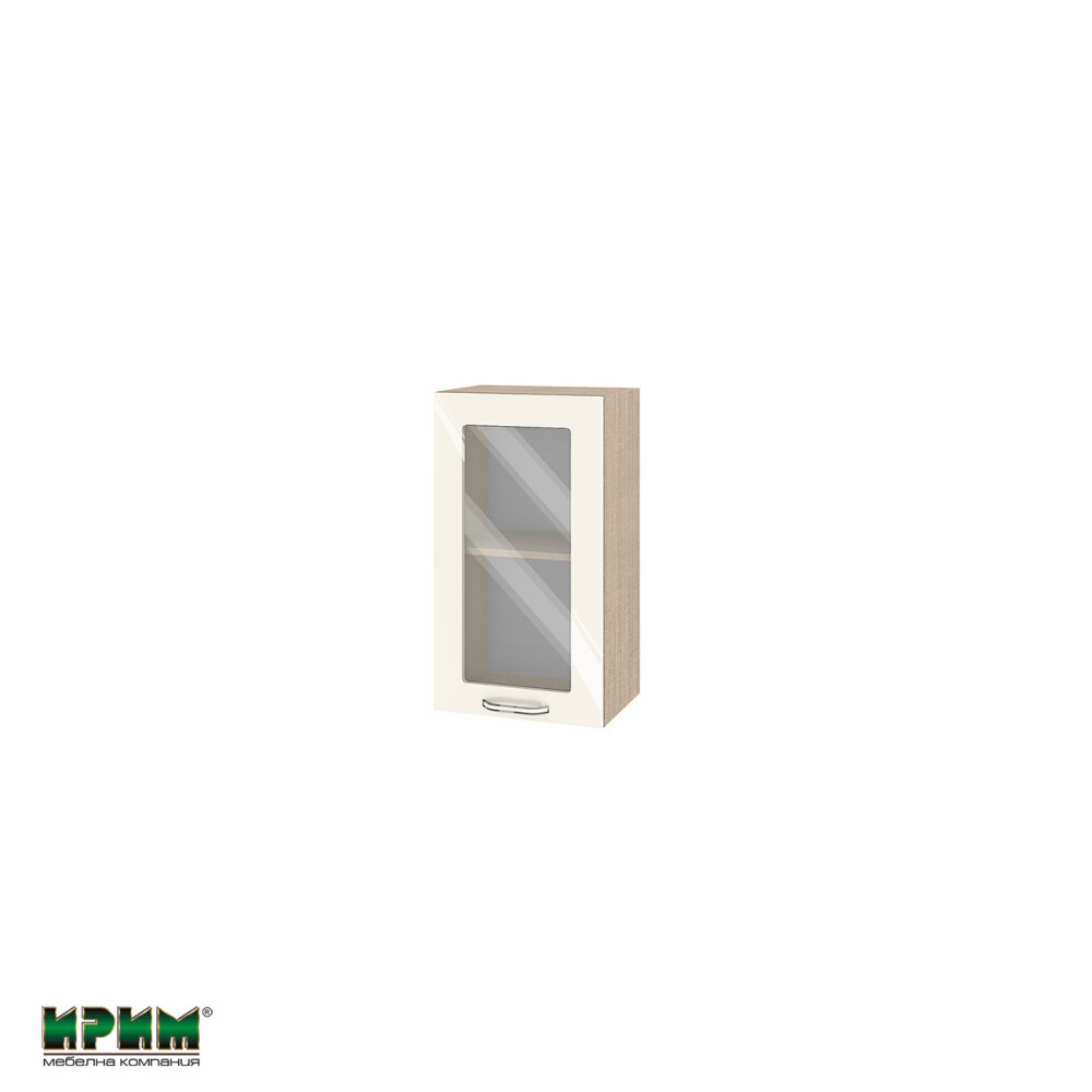 Горен модул с витринна врата и рафт МФ-Крийм гланц-11-202