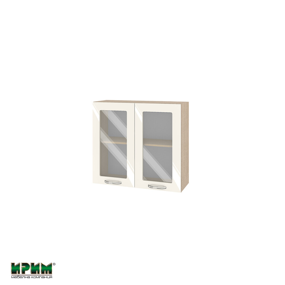 Горен модул с две витринни врати и рафт МФ-Крийм гланц-11-204