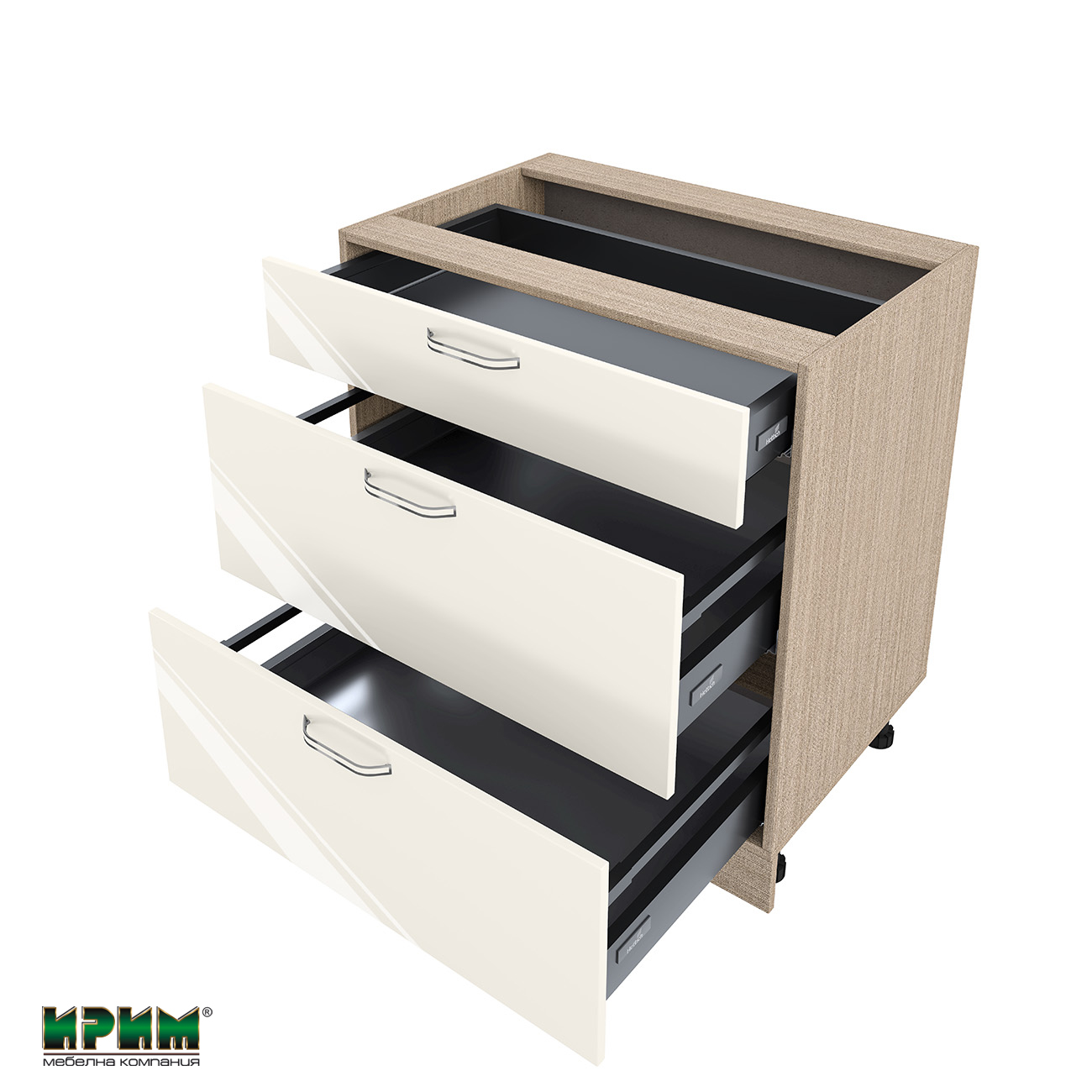 Долен модул с три чекмеджета с плавно затваряне МФ-Крийм гланц-11-55