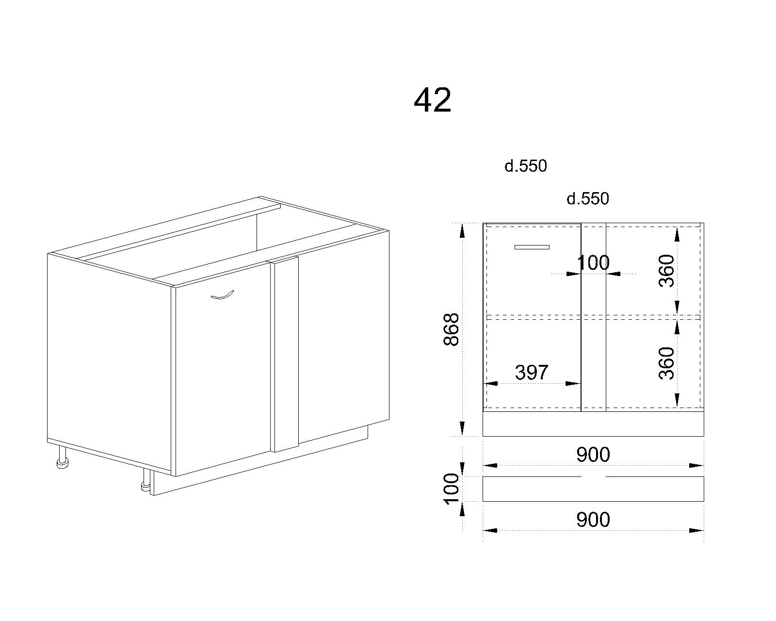 Долен модул за ъгъл с врата и рафт АРФ-Бяло гланц-05-42