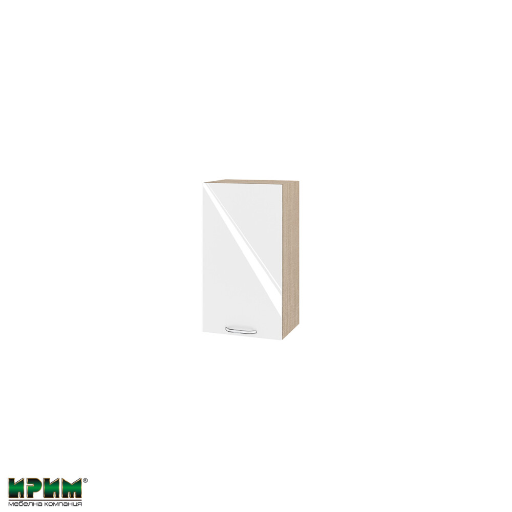 Горен модул с врата и рафт МФ-Бяло гланц-05-2