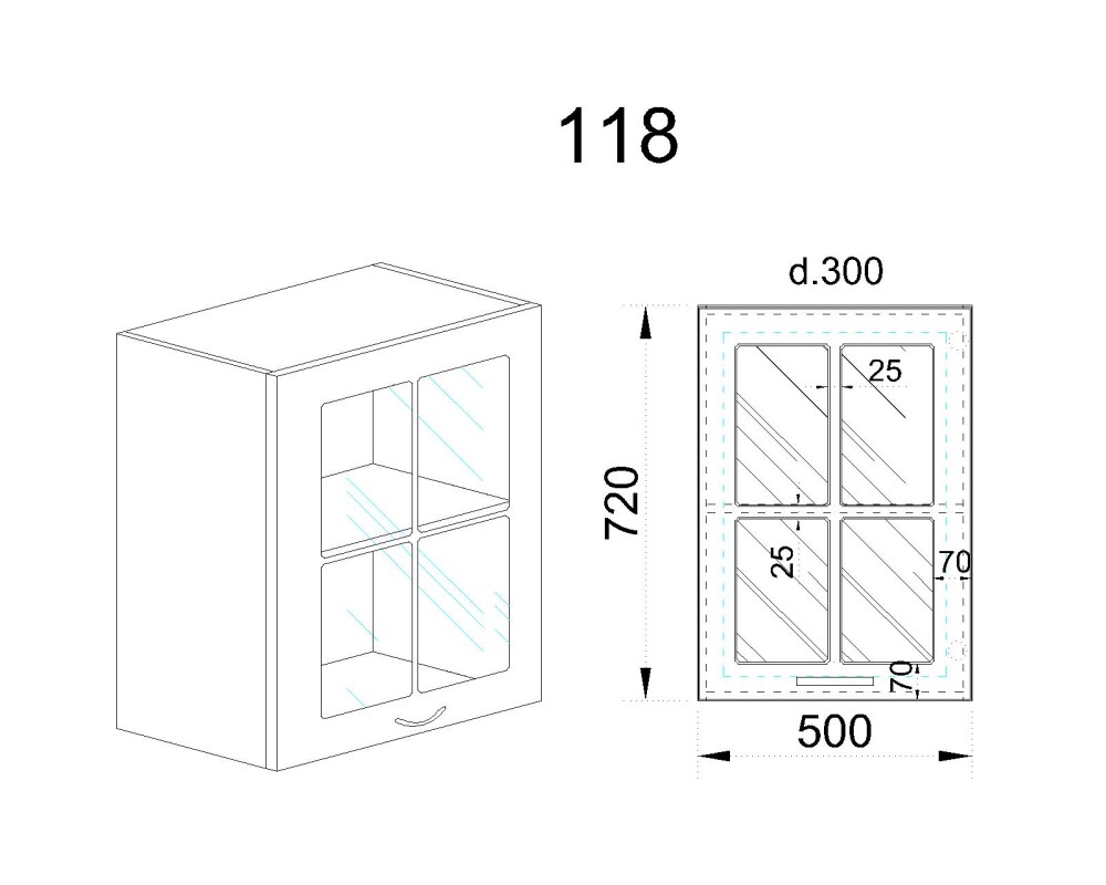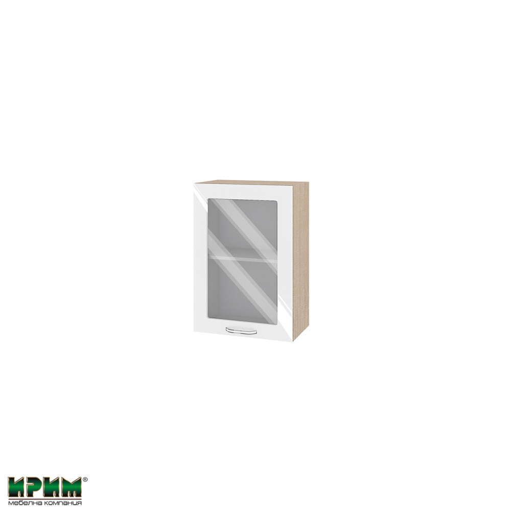 Горен модул с витринна врата и рафт МФ-Бяло гланц-05-218