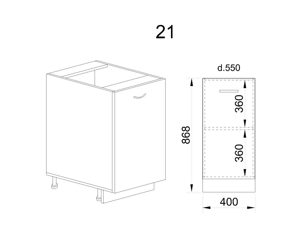 Долен модул с врата и рафт МФ-Бяло гланц-05-21