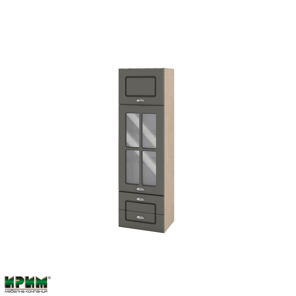 Горен модул с врата,витрина и две чекмеджета МФ-Цимент мат-06-101