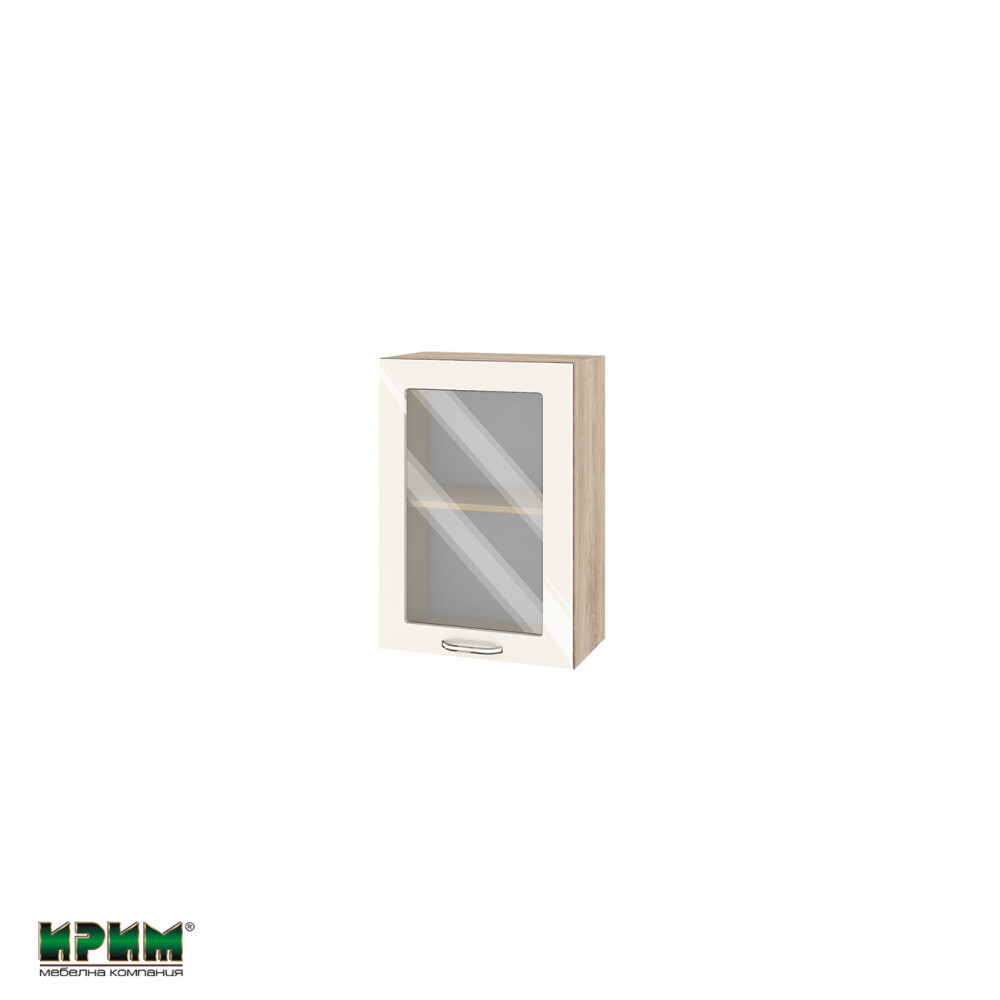 Горен модул с витринна врата и рафт АРФ-Крийм гланц-06-218