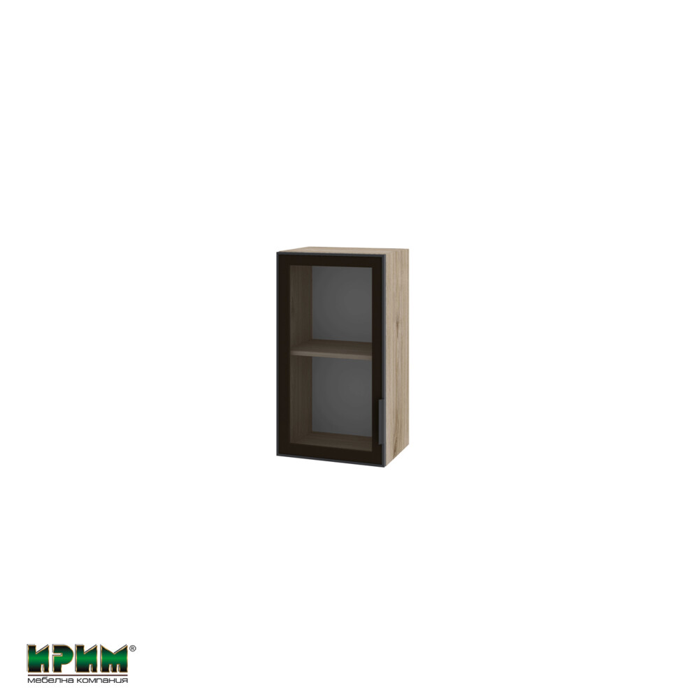 Горен модул със стъклена врата Алу глас и рафт АРАЛ - 171 (ляв)