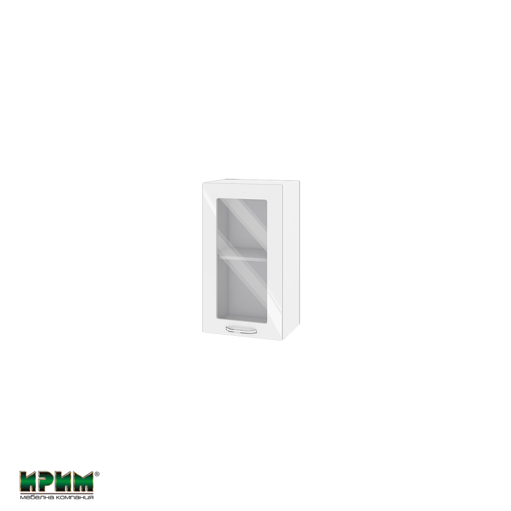 Горен модул с витринна врата и рафт БФ-Бяло гланц-05-202