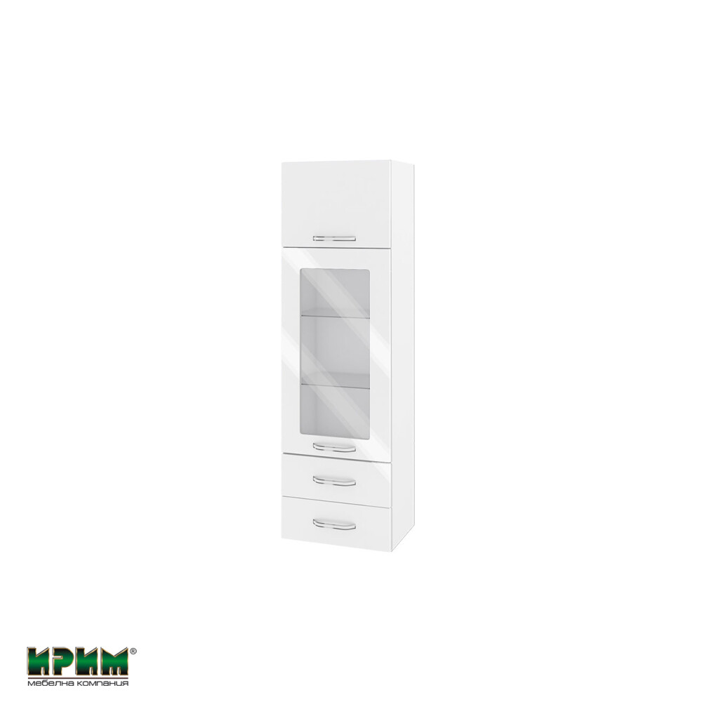 Горен модул с врата,витрина и две чекмеджета БФ-Бяло гланц-05-201