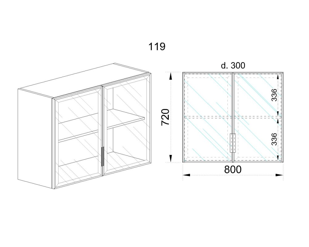 Горен модул с две стъклени врати и рафт Алу глас и рафт БАЛ - 119