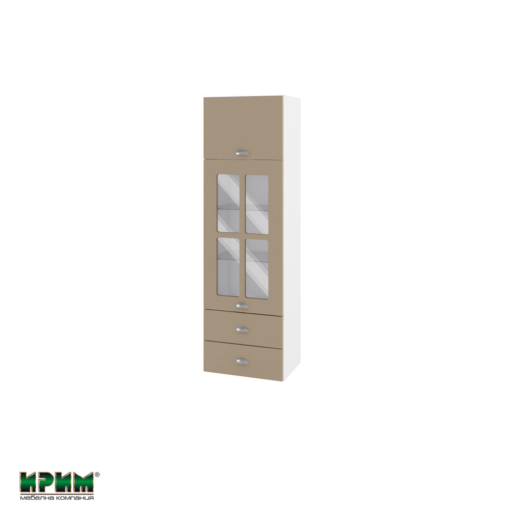 Горен модул с повдигаща врата,витрина и 2 чекмеджета БФ-Капучино мат-11-101