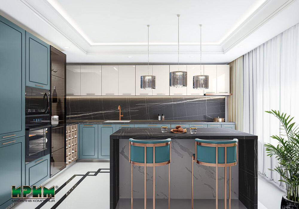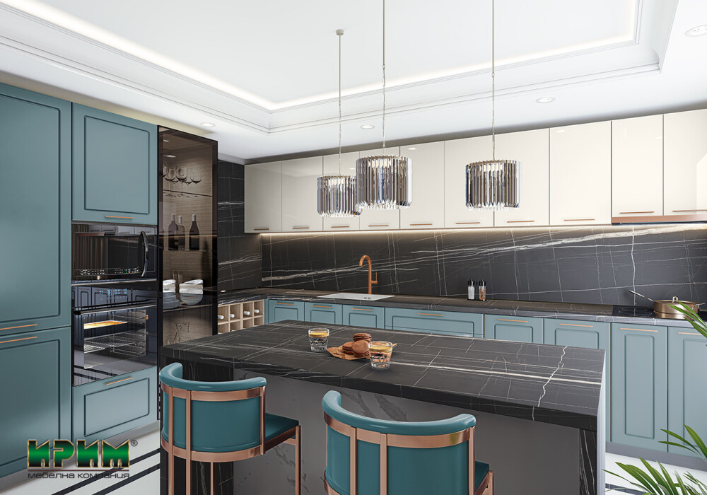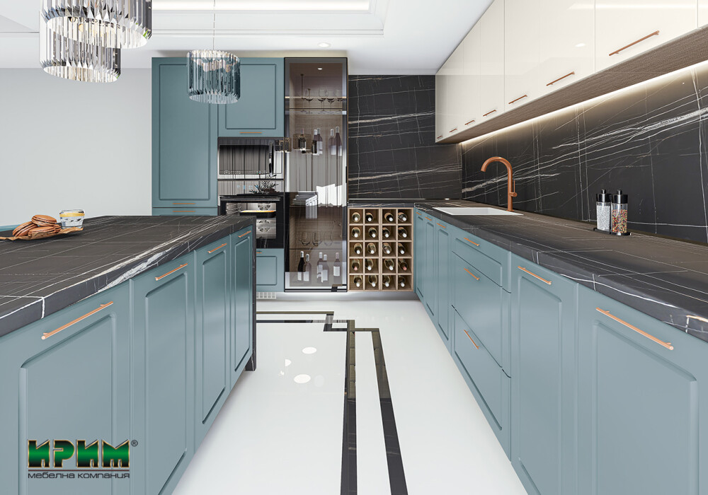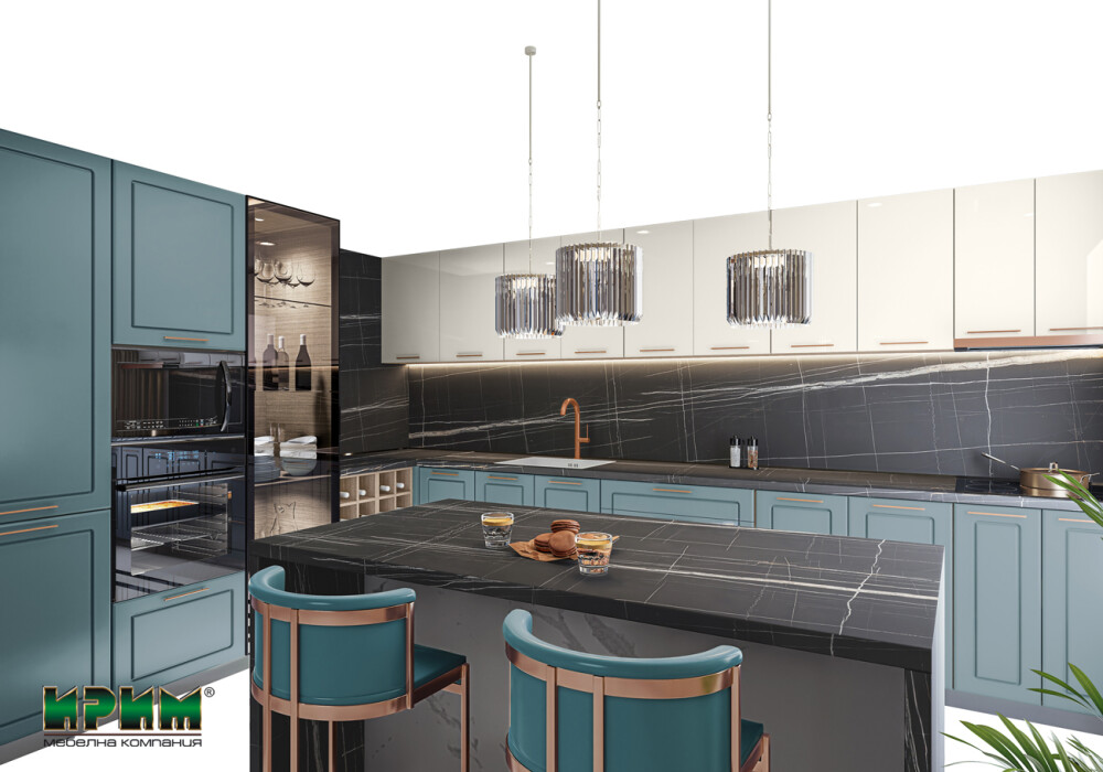 Кухня МФ-Деним мат-06 се отличава с модерен дизайн в изтънчена комбинация от матов деним и корпус в цвят мока , създаваща усещане за уют и стил. Функционалното разпределение на модулите и възможността за вграждане на уредите и мивката осигуряват удобство и практичност във всяко пространство . Висококачествените материали – МДФ лице, плот „Мрамор Палазо“ и LED осветление – придават луксозно излъчване и дълготрайност. Идеален избор за модерен дом, който съчетава елегантност, комфорт и функционалност .