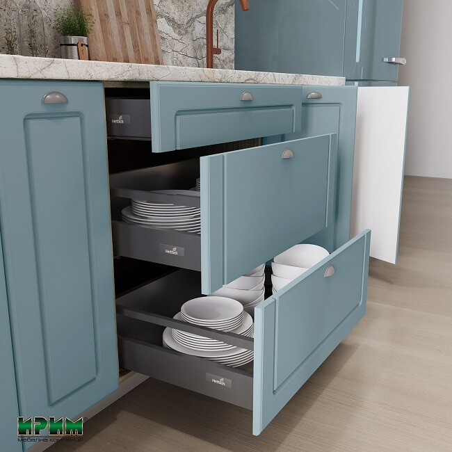 - Долен модул с три чекмеджета със система InnoTech Atira плавно пребиране МФ-Деним мат-06-55 - 80/55/87см.