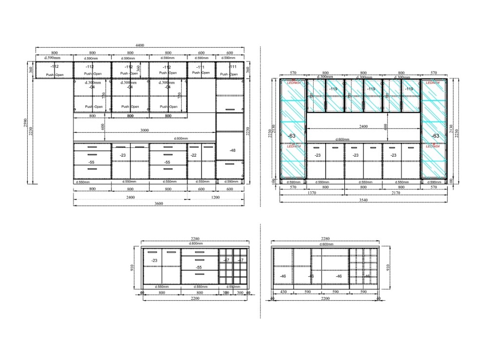 - Четири долни модула с две врати и рафт, възможност за вграждане на мивка МФ-Цимент мат-06-23 - 80/55/87см.