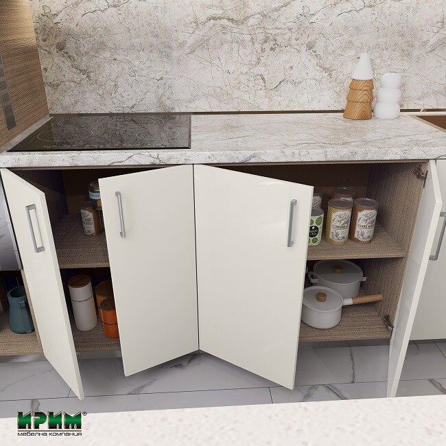 - Четири модула с две врати и рафт с възможност за вграждане на мивка МФ-Крийм гланц-11-23 - 80/55/87см.