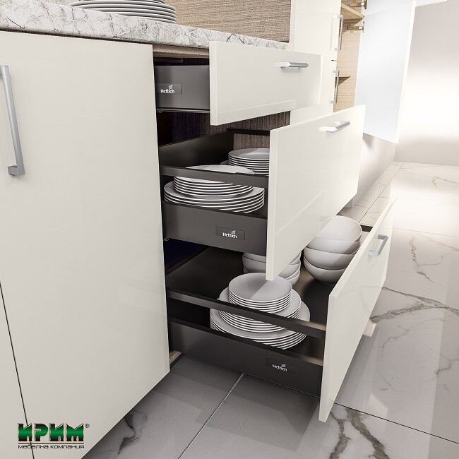 - Долен модул с три чекмеджета и система InnoTech Atira с плавно прибиране МФ-Крийм гланц-11-55 - 80/55/87см.